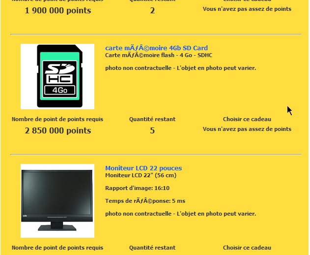 Usted verá en todas las diez categorías enumeradas, vamos a mencionar algunos: - Gana DVD; - Gane códigos (byncode, findcode, paquete de + ...) - Ganar los juegos de video; - Ganar dinero; - Más información más regalos en detalle en el sitio de juegos LaBoitaKados.com.